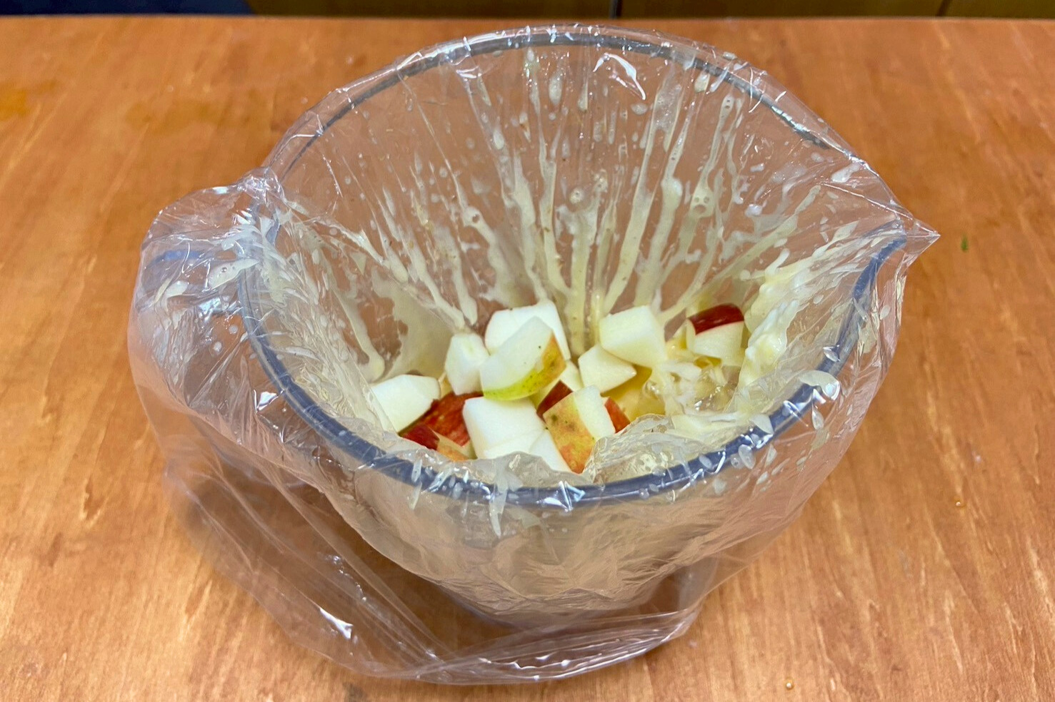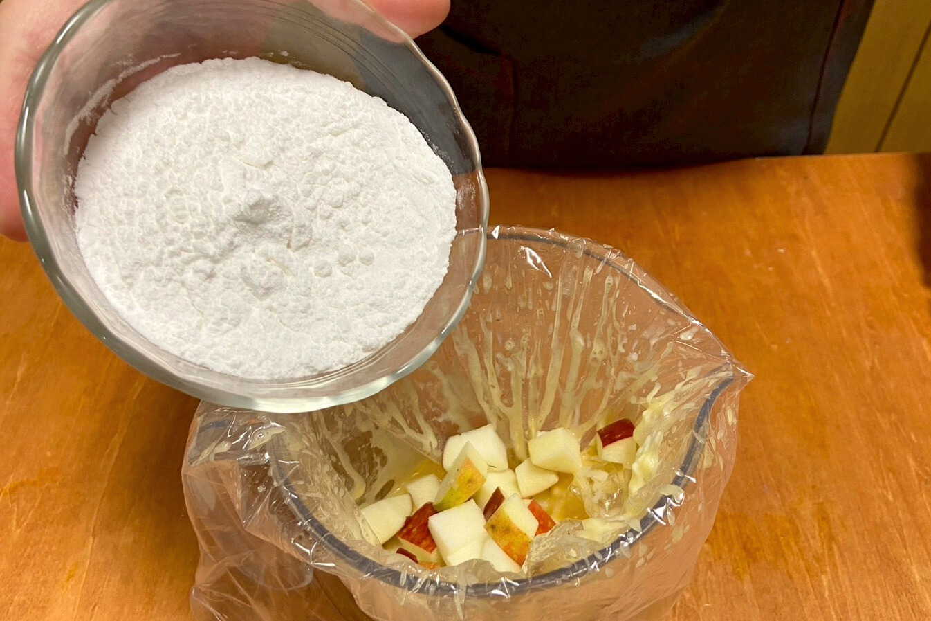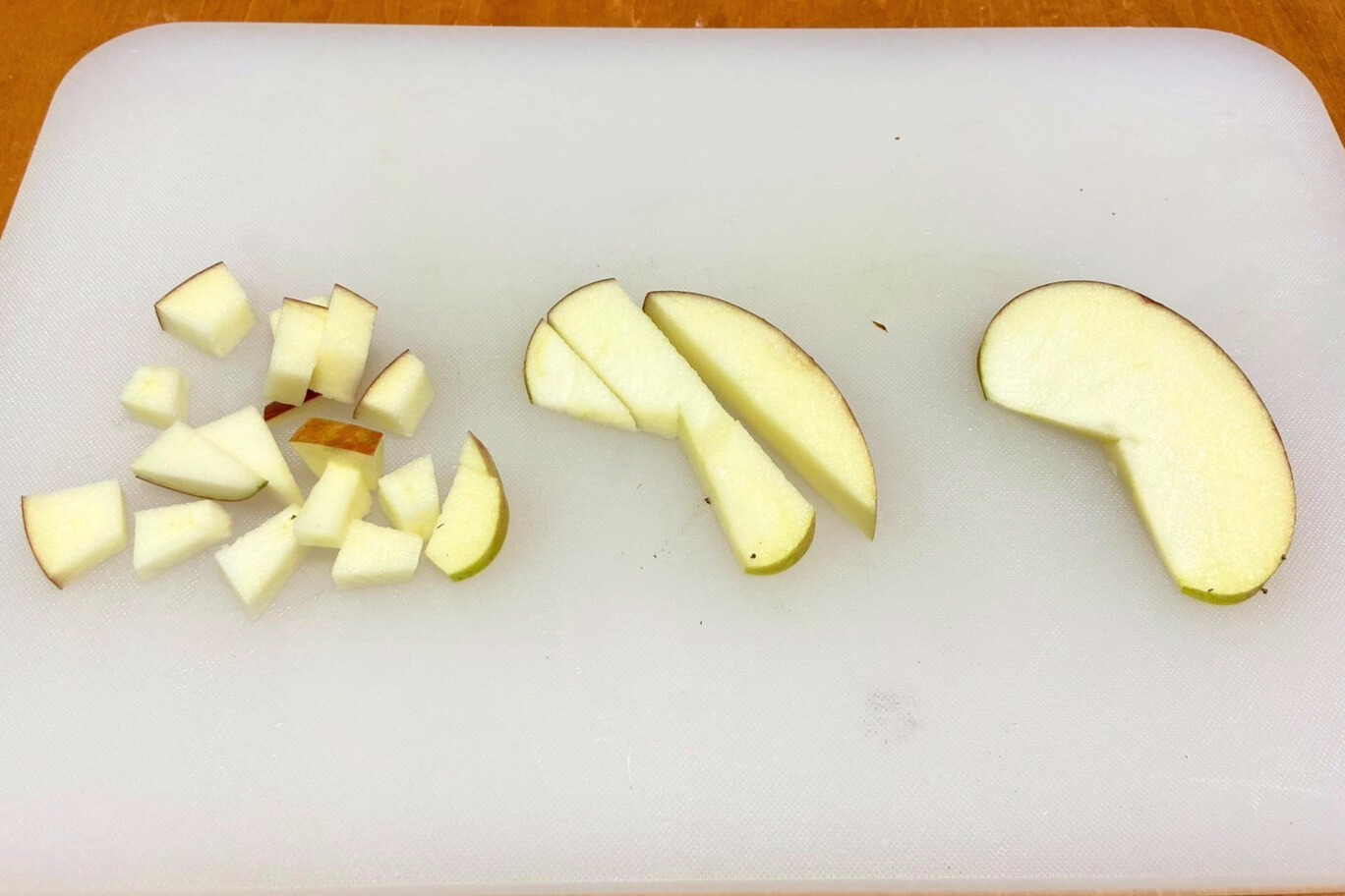 1.りんごは、皮をむかずに芯をとり、小さく切る。